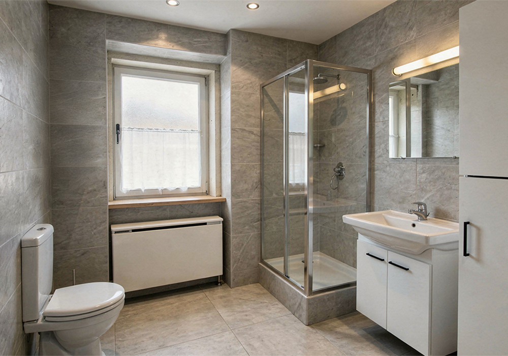 Vor der Sanierung prägten oft klobige Heizkörper, veraltete Sanitärobjekte und unpraktische Trennwände das Bild. Dunkle Ecken und in die Jahre gekommene Oberflächen machten das Bad eher zu einem Durchgangszimmer als zu einem Ort der Entspannung. Die Technik war ineffizient, der Platz wurde nicht optimal genutzt.